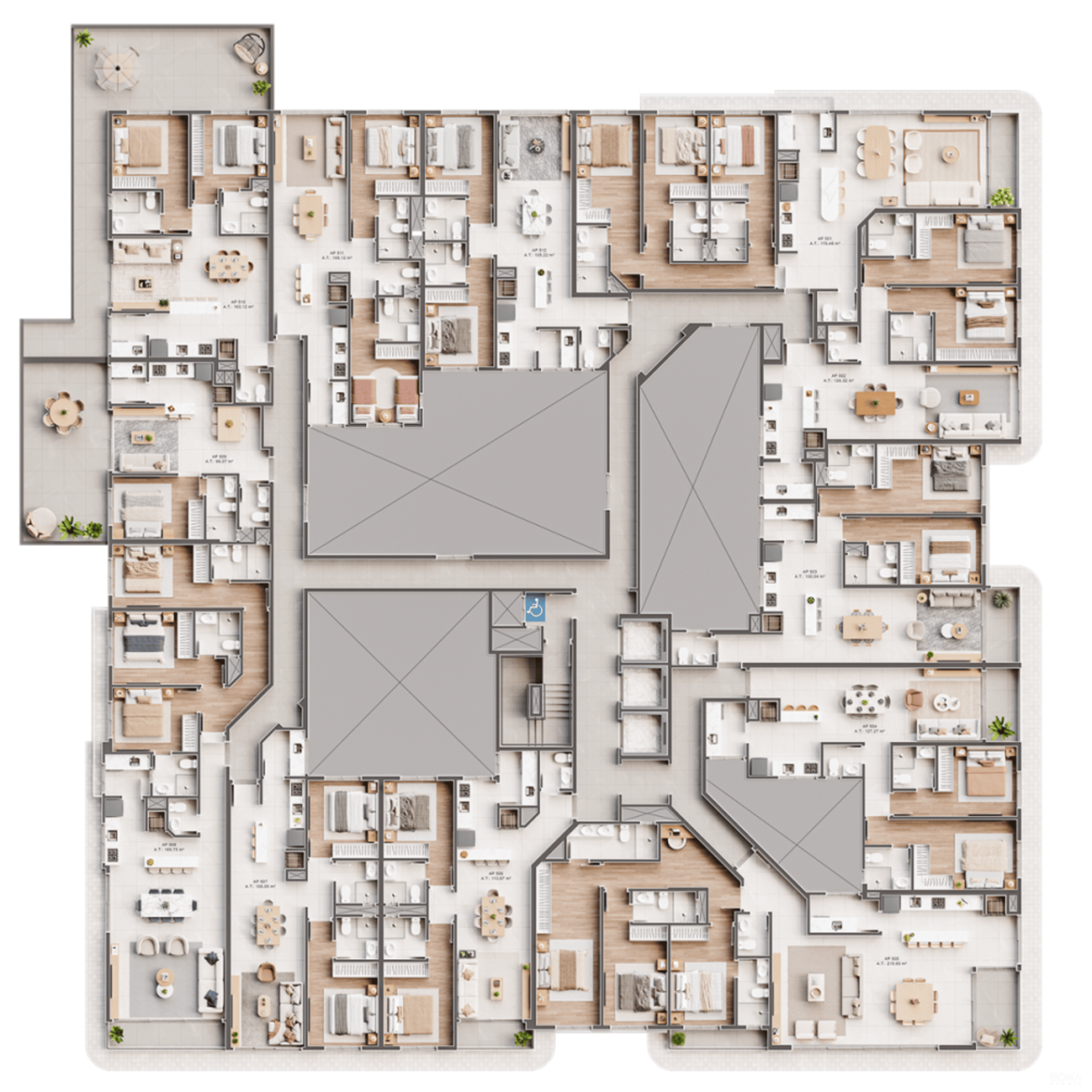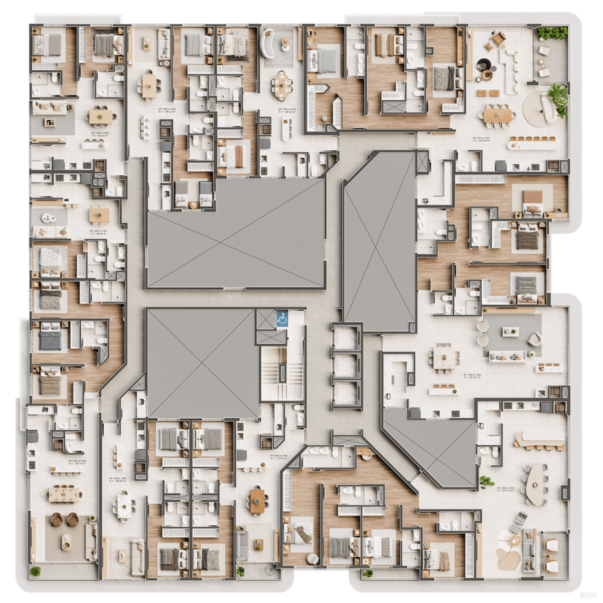 São mais de 15 opções de tipologia, variando de 1 a 4 suítes | 65 a 271 m² A.T.