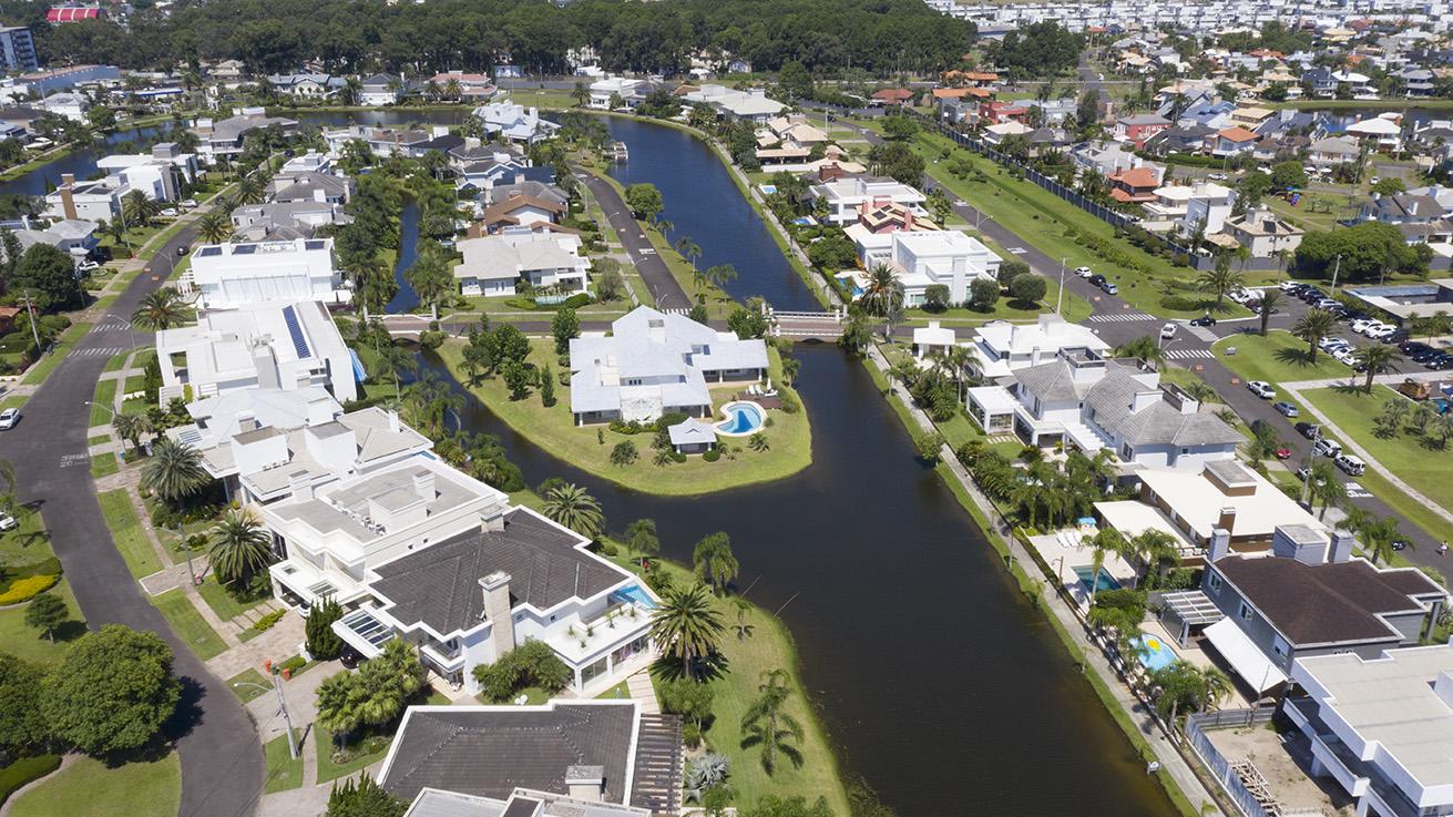 Um ícone de alto luxo no litoral gaúcho. Pioneiro no conceito de lagos interligados onde os terrenos possuem fundos para a água.