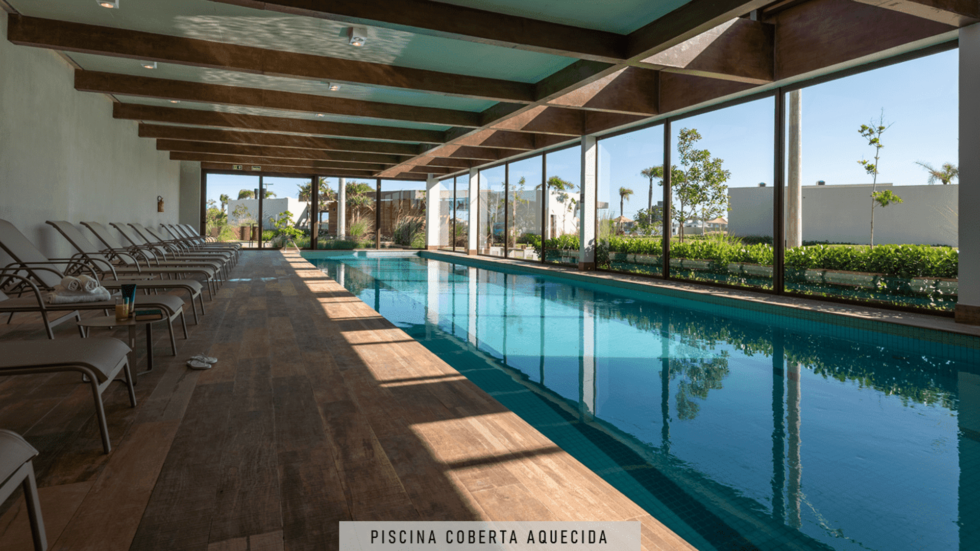 Piscina térmica coberta com raia semiolímpica (25m).