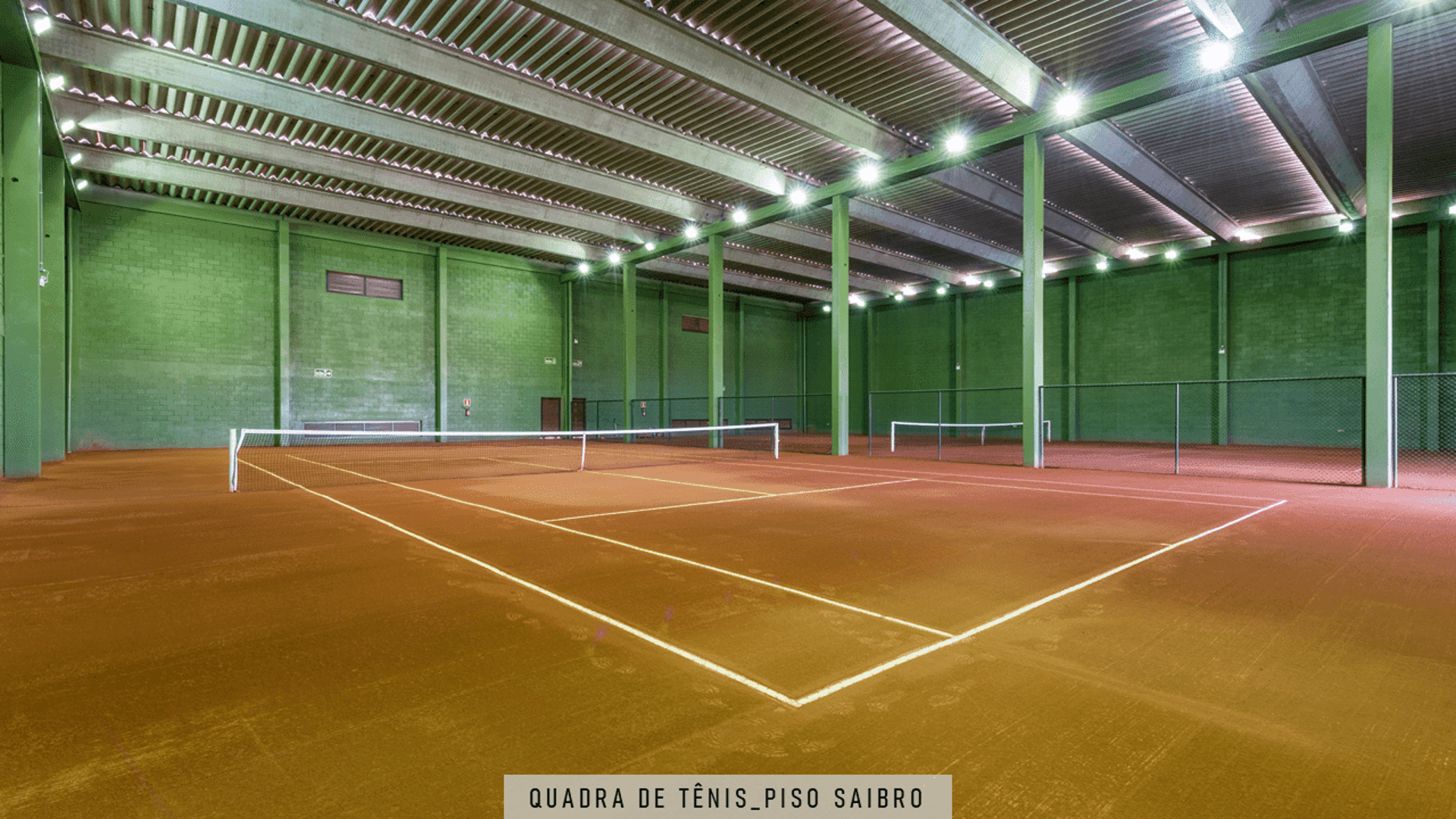 2 Quadras de tênis de saibro cobertas.