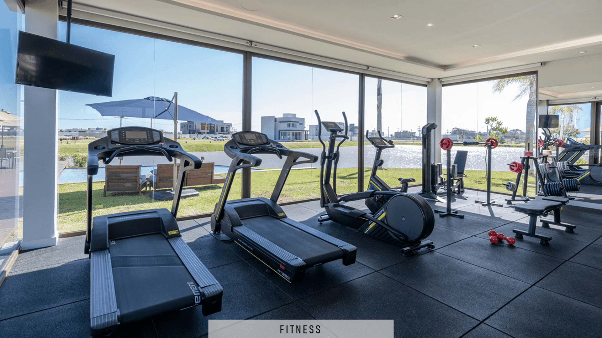 Fitness Center com vista para o lago.