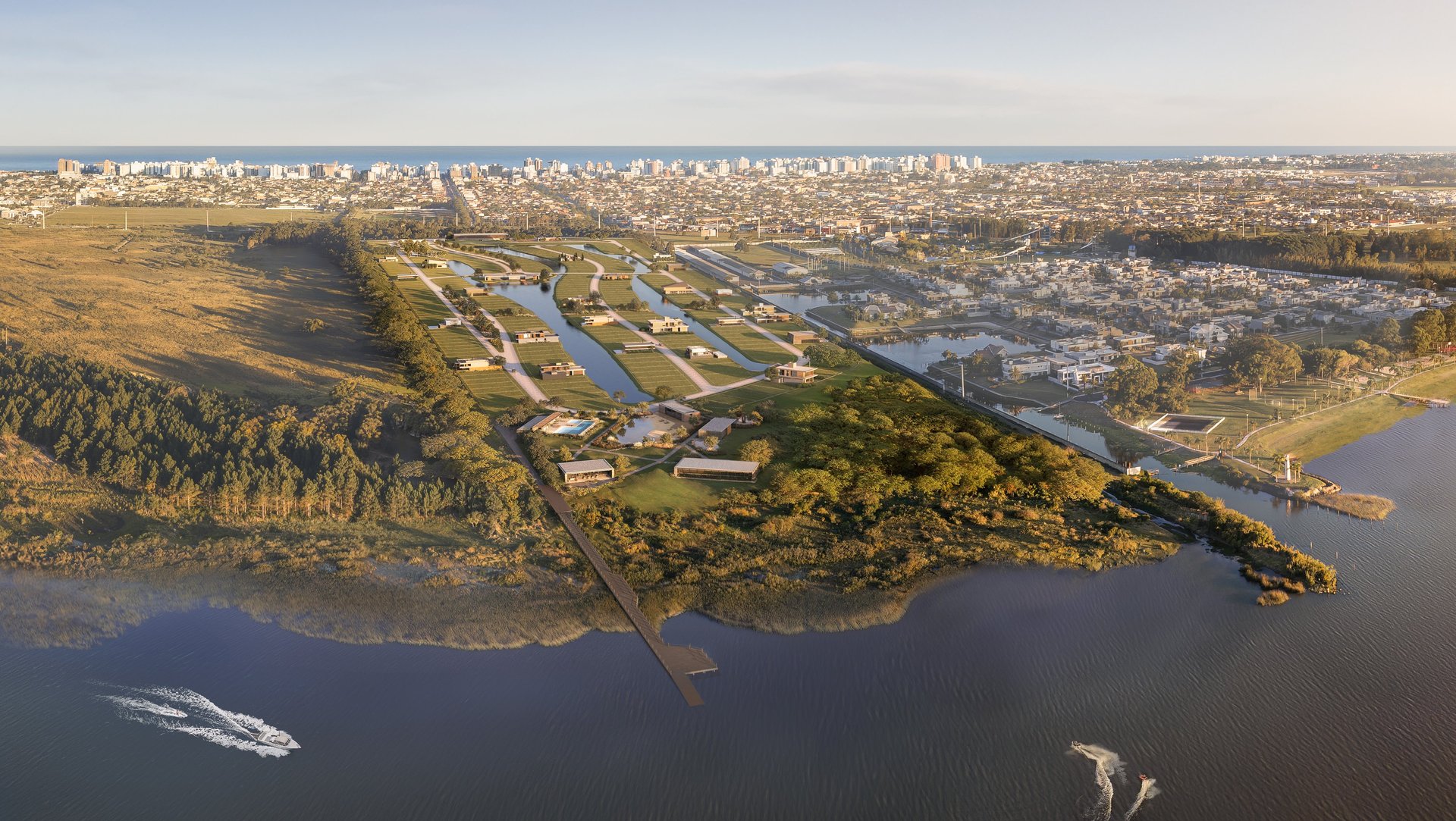 Lagoa dos Quadros com trapiche e garagem náutica.