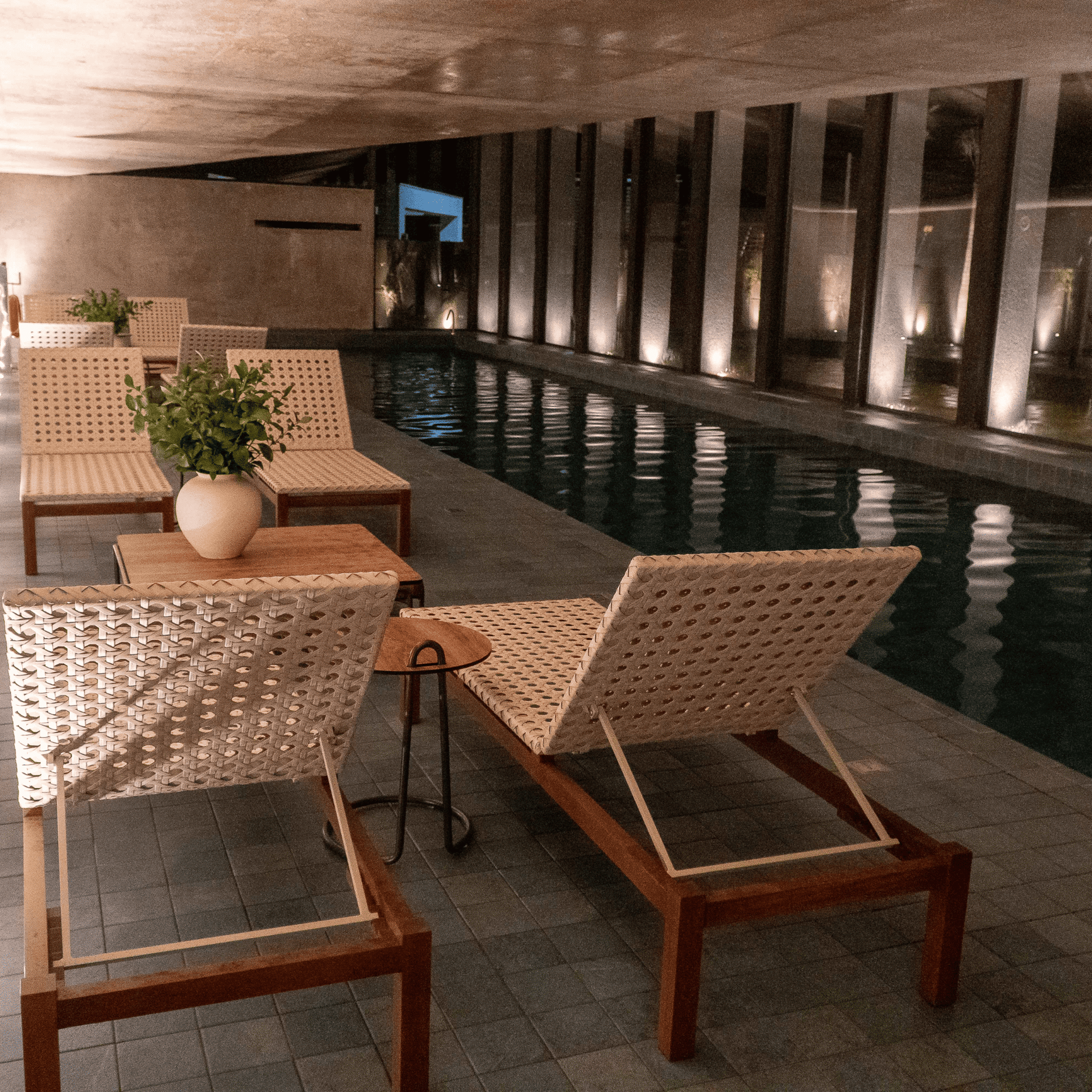 Centro de SPA com piscina térmica (raia 25m), sauna seca e úmida.