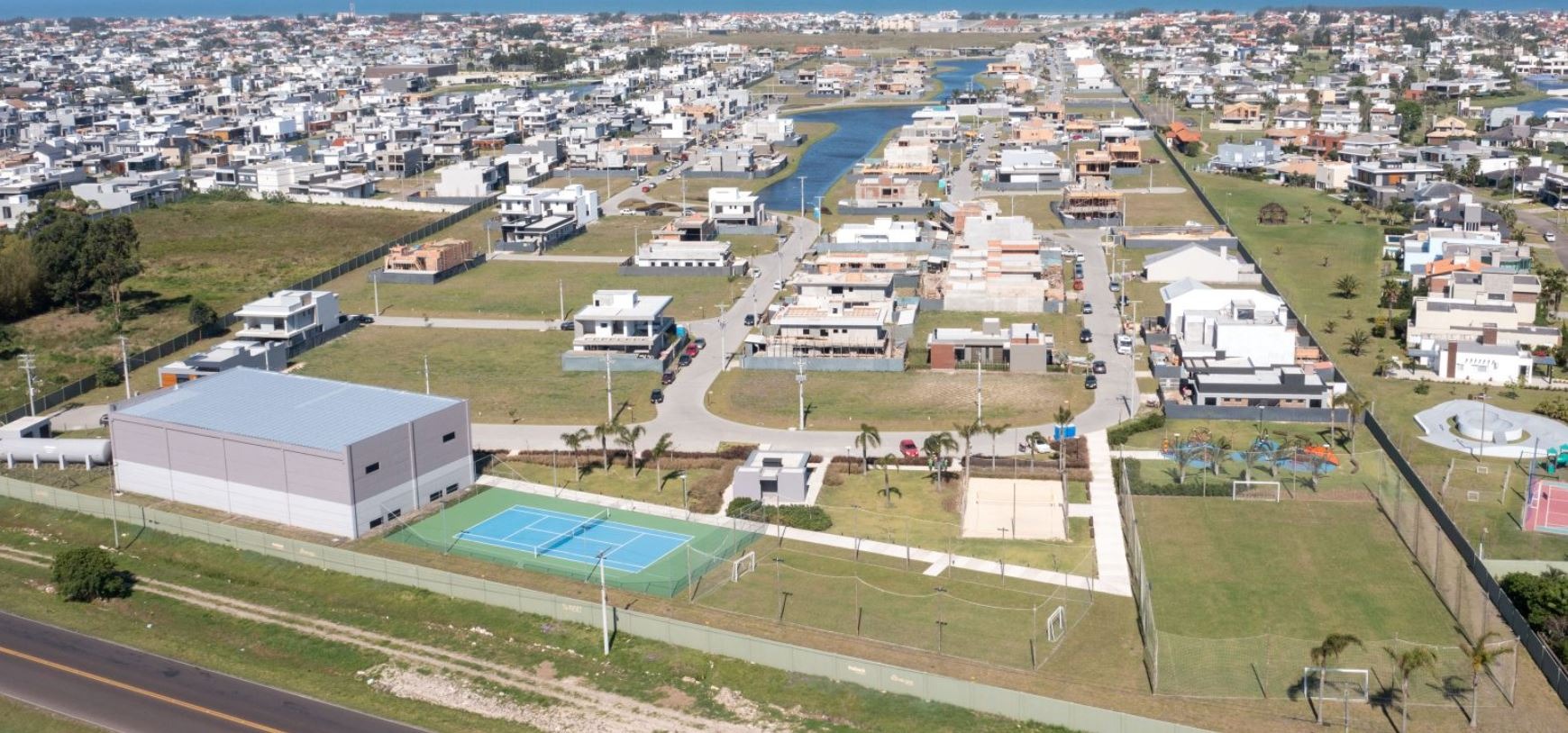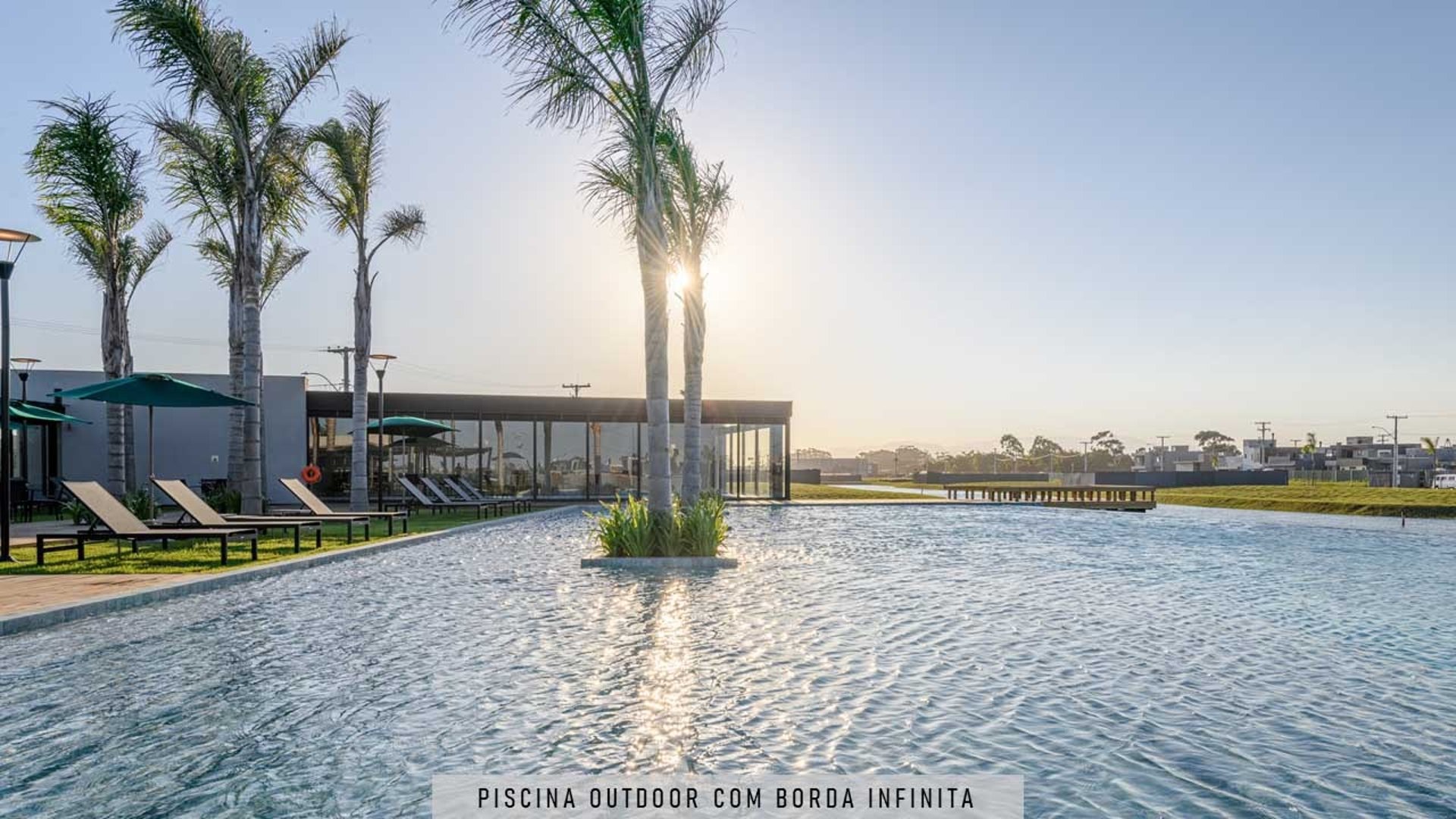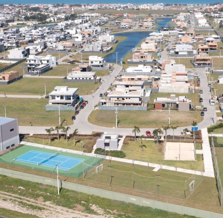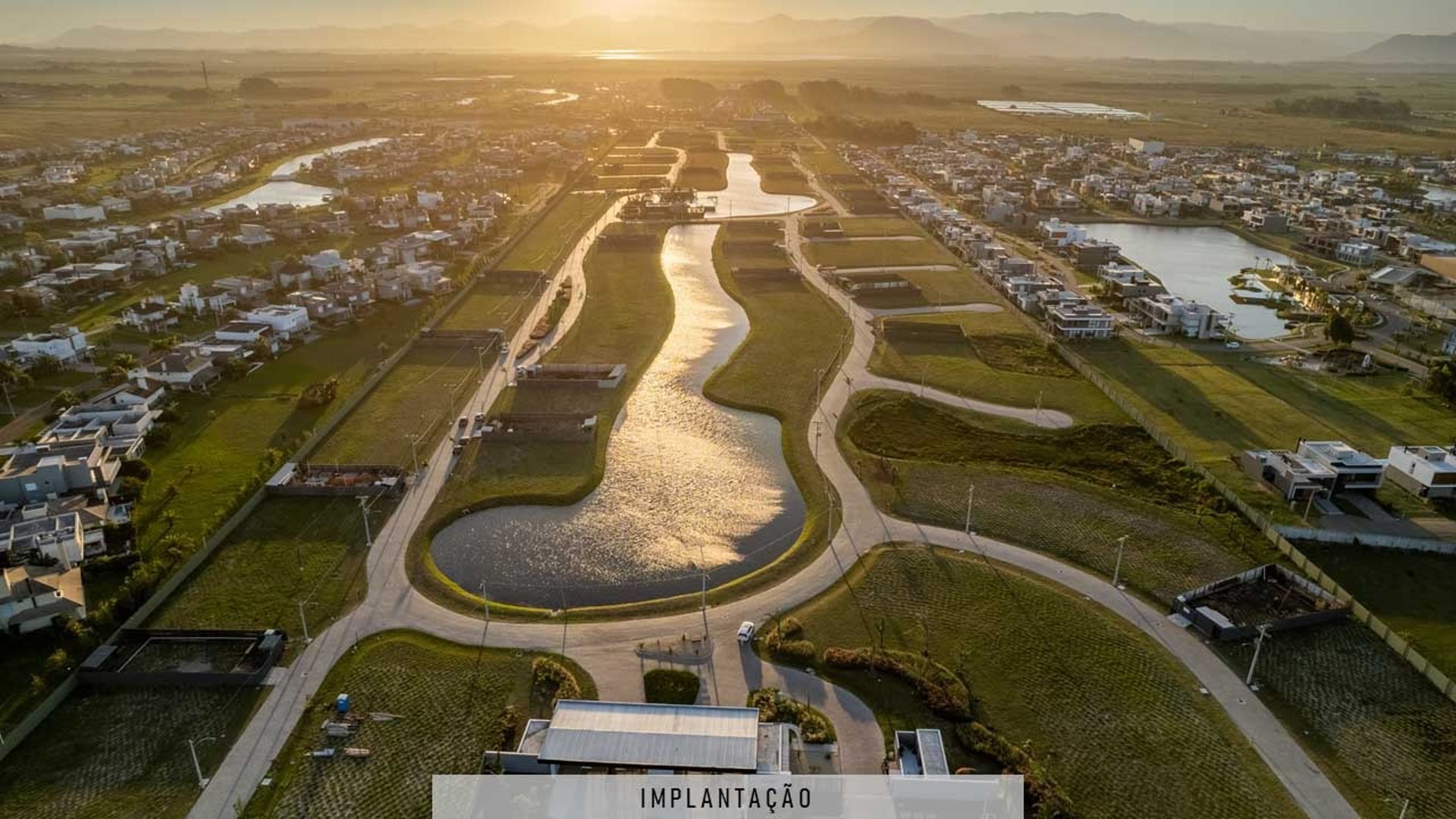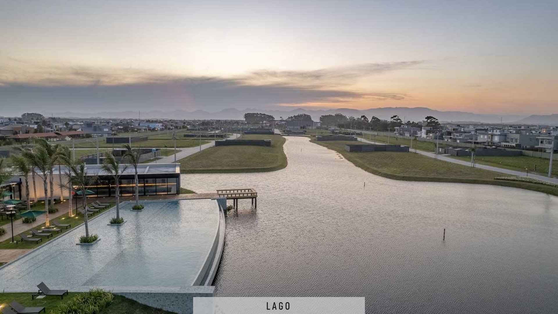 Condomínio focado em lotes com vista para o pôr do sol e lagos, oferecendo uma infraestrutura completa em uma área de expansão urbana.
